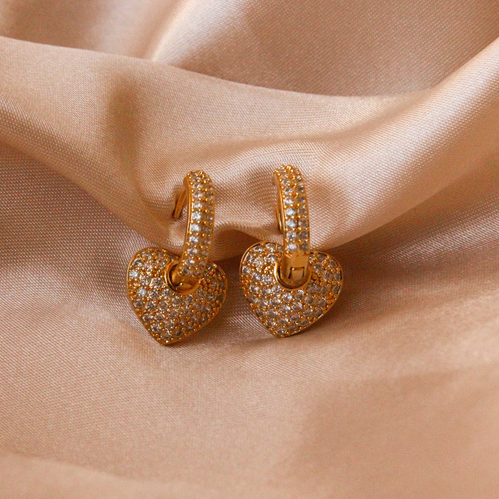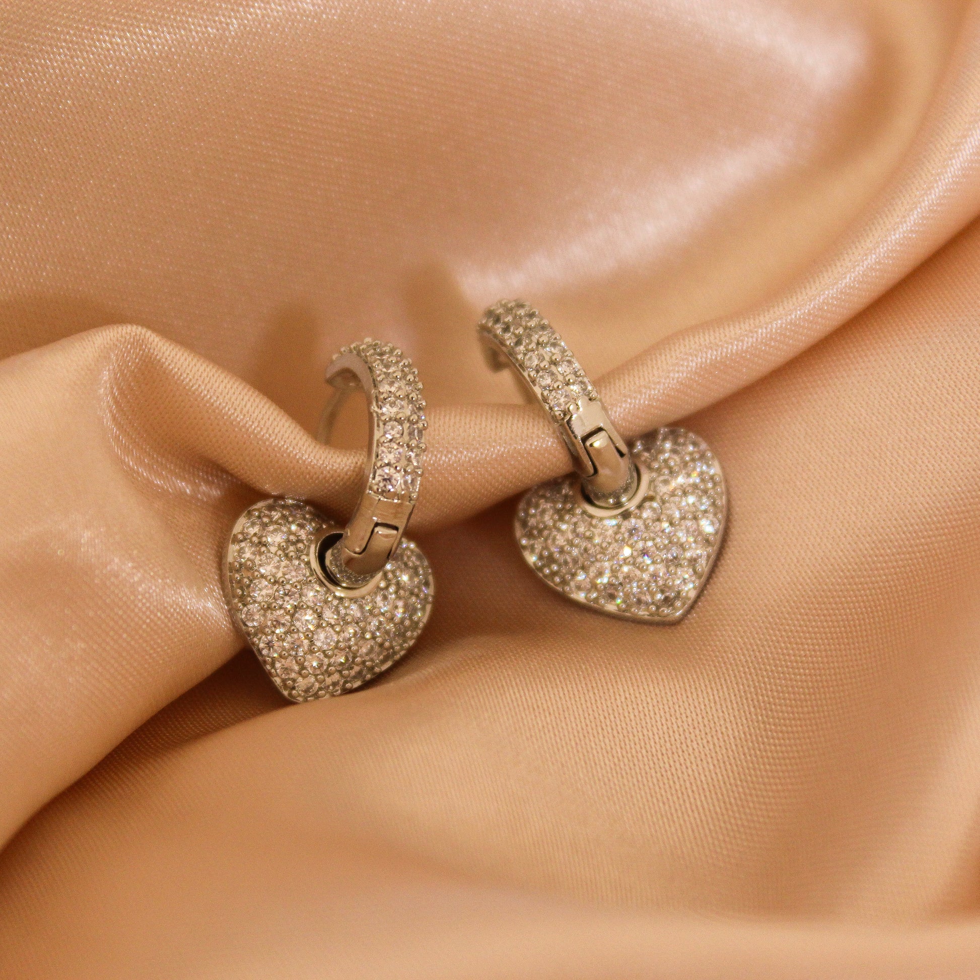 Le pendentif coeur peut se lever pour faire une créole simple à strass.