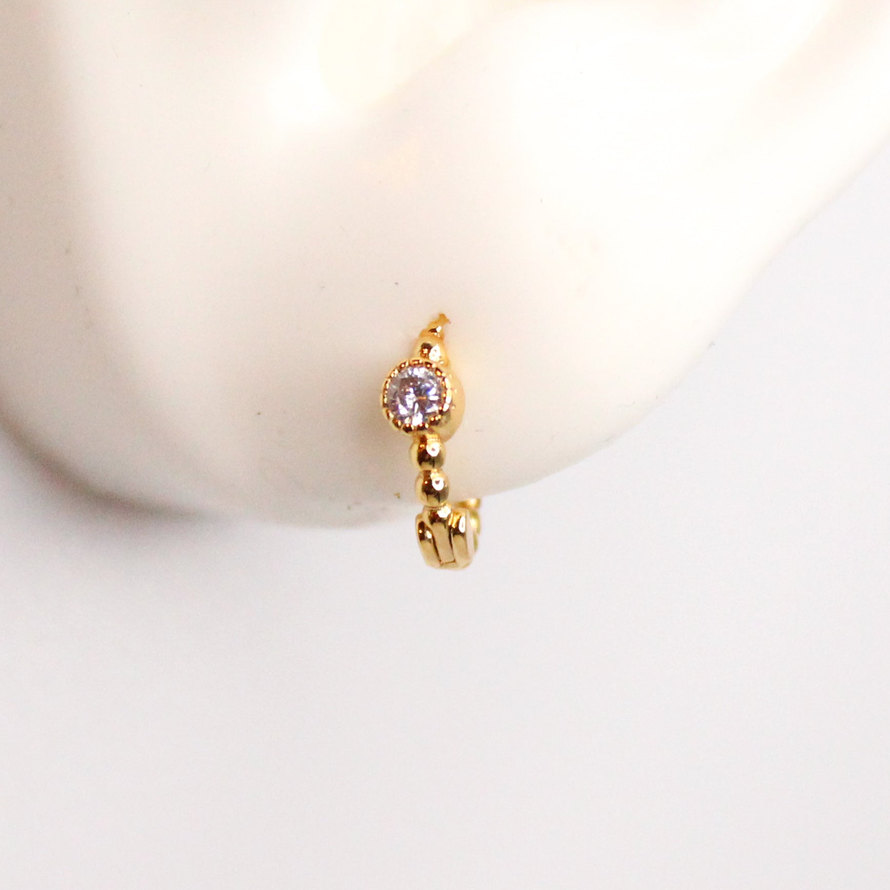 Boucle d’oreille en acier inoxydable dorée, strass en zirconium
