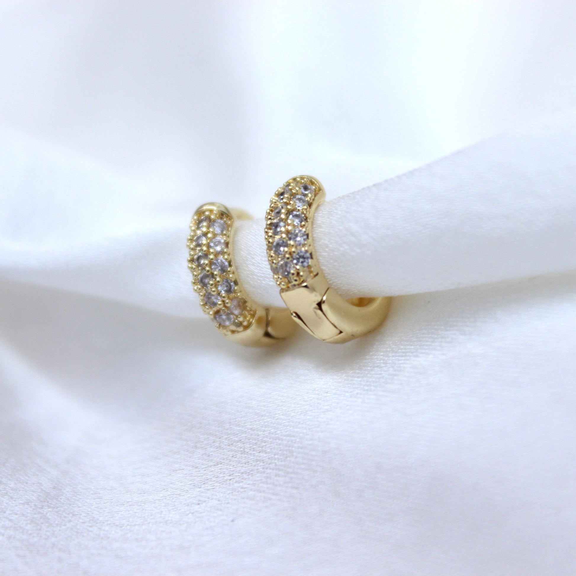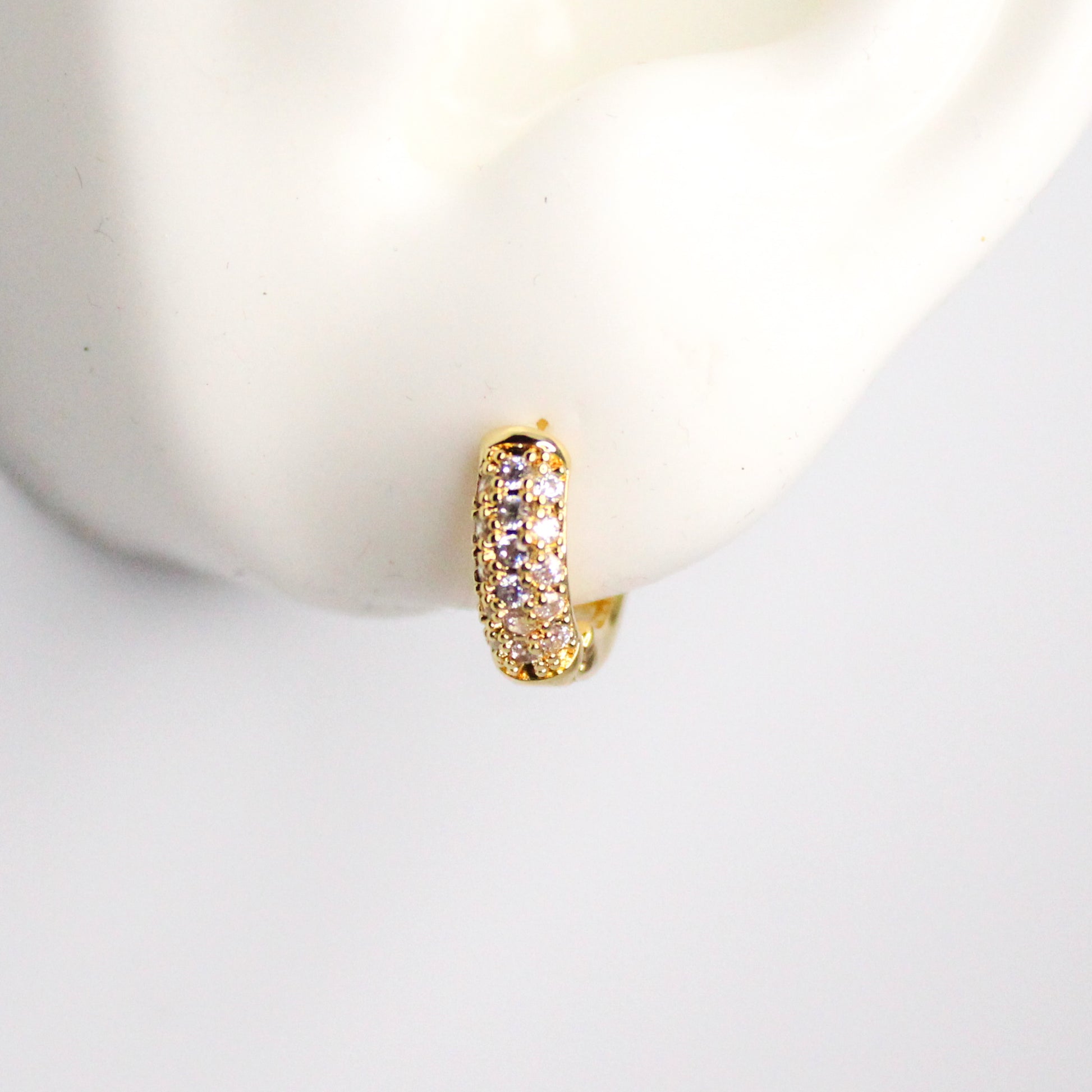 Paires de boucles d’oreille en acier inoxydable dorée , avec strass en zirconium.