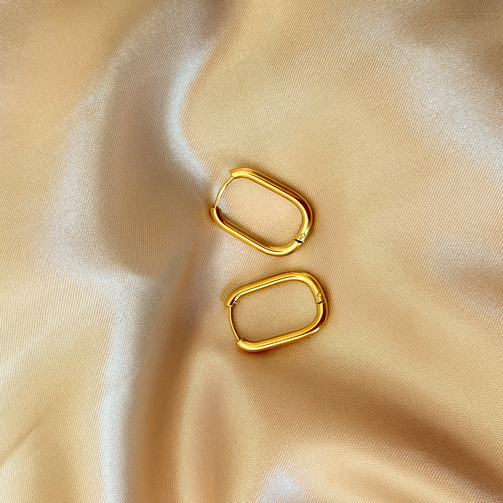 Paires de boucles d’oreille en acier inoxydable dorée.