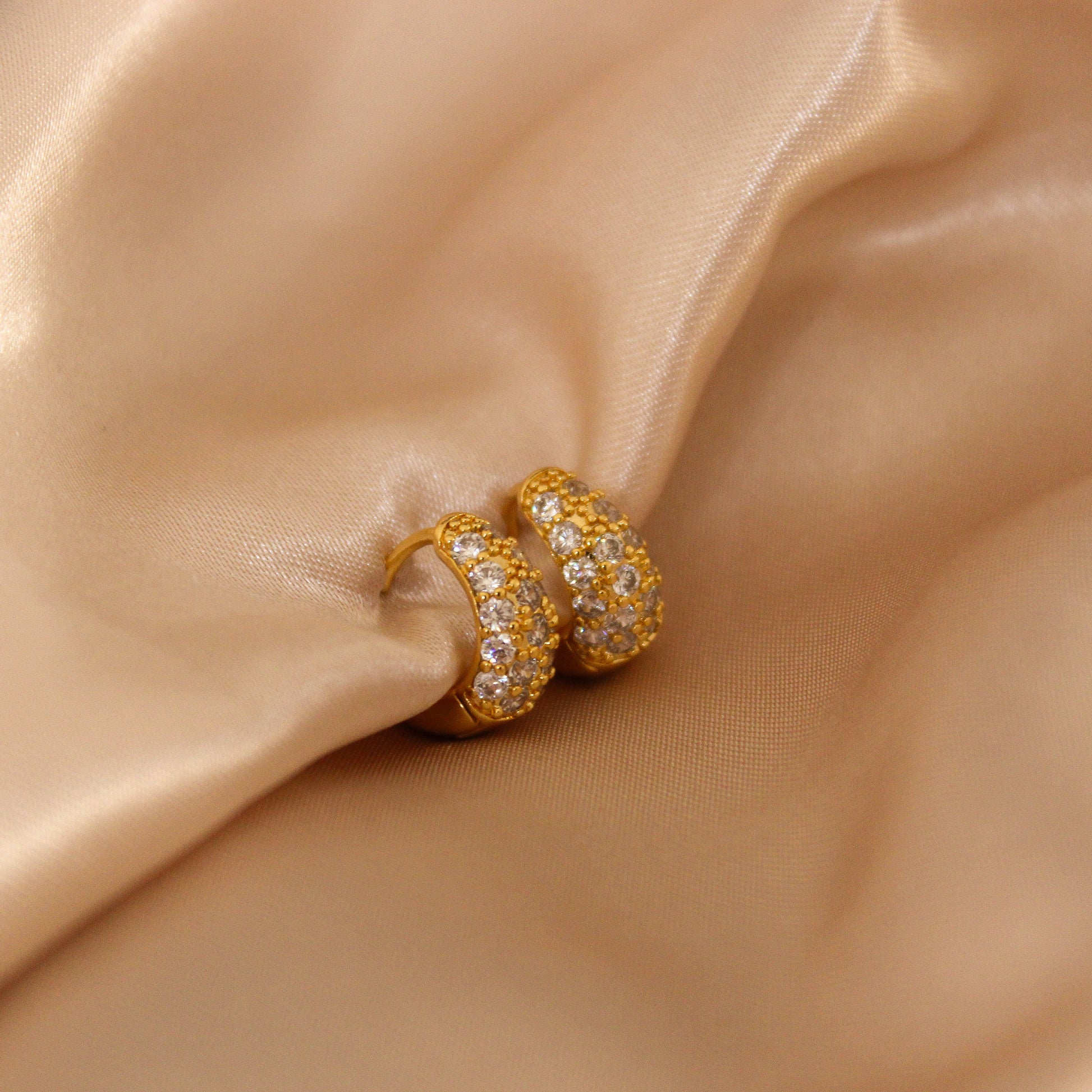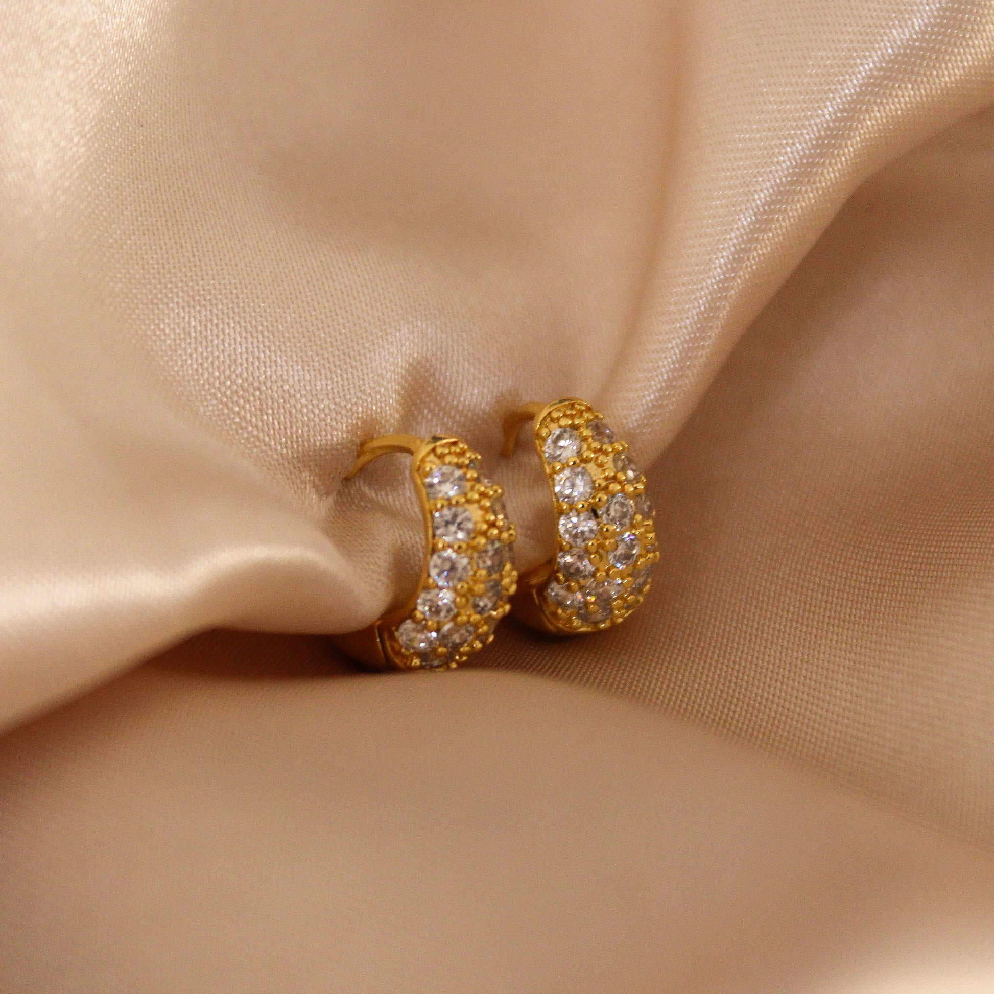 Paires de boucles d’oreille en acier inoxydable dorée, strass en zirconium