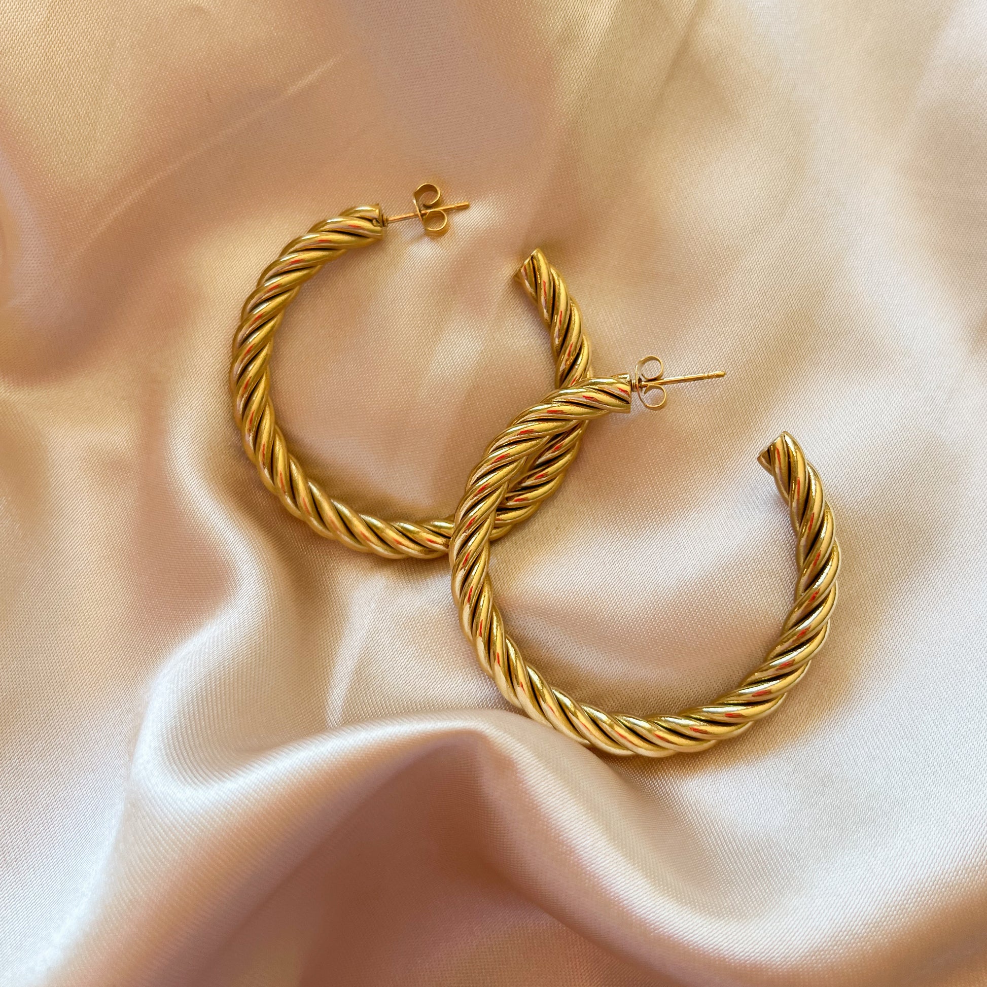 Paires de boucles d’oreille en acier inoxydable dorée.