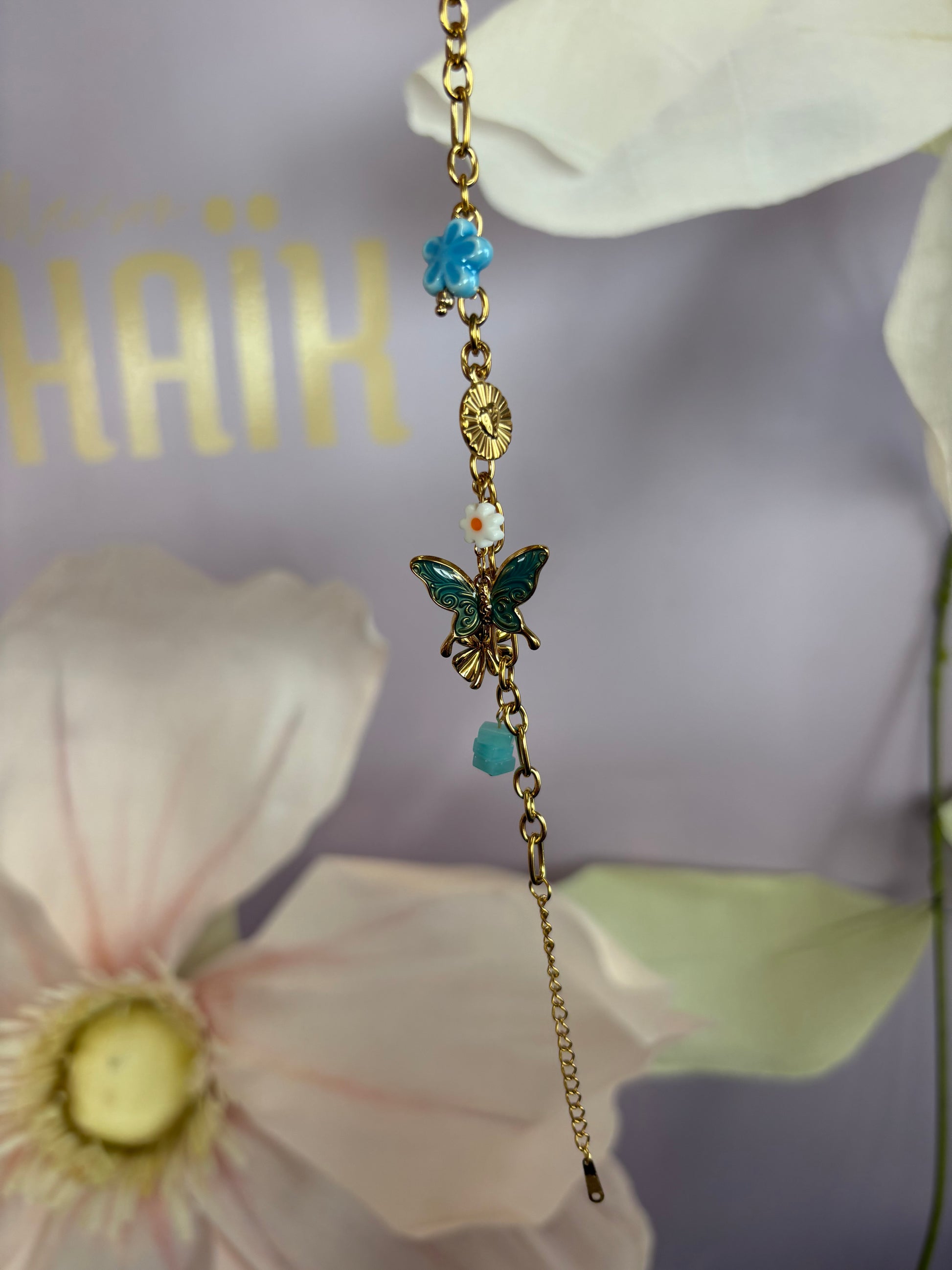 Bracelet breloque papillon bleu