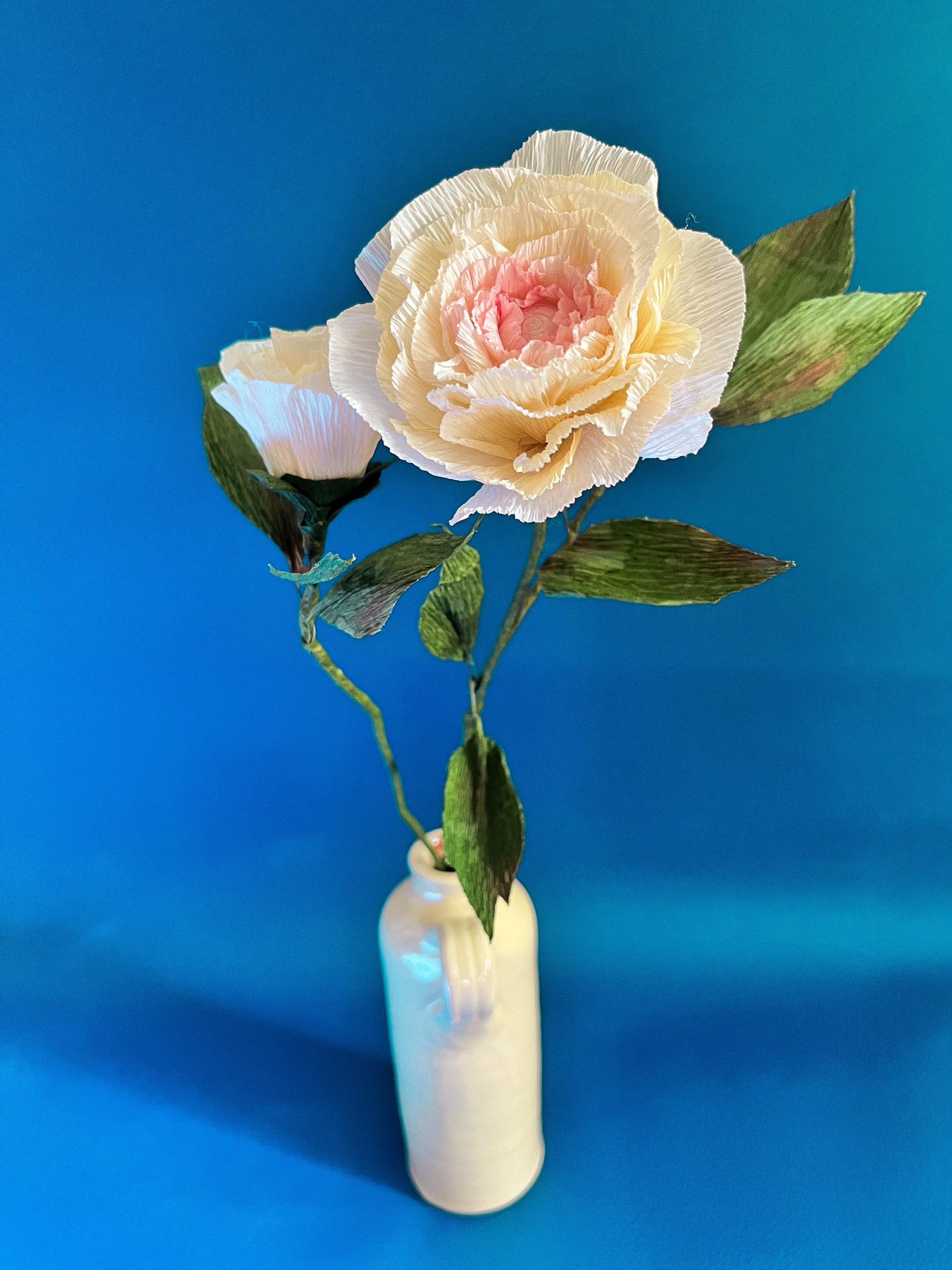 Découvrez l'élégance intemporelle des bouquets de fleurs en papier crépon. Ici la tige « Rosy » au tons pastels.